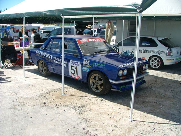 Quick specs: ’72 Datsun 510 4-door built for race/rally duties, packing a dry-sump equipped 260hp SR20DE with individual throttle bodies. More info after the jump…