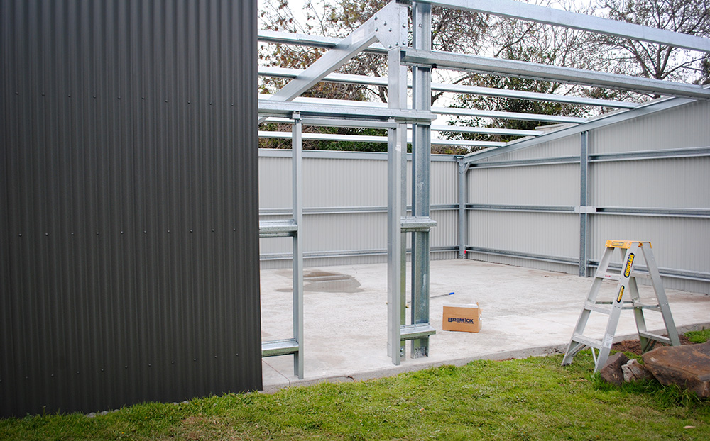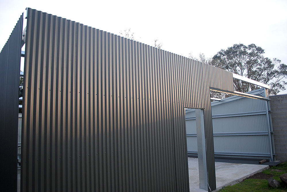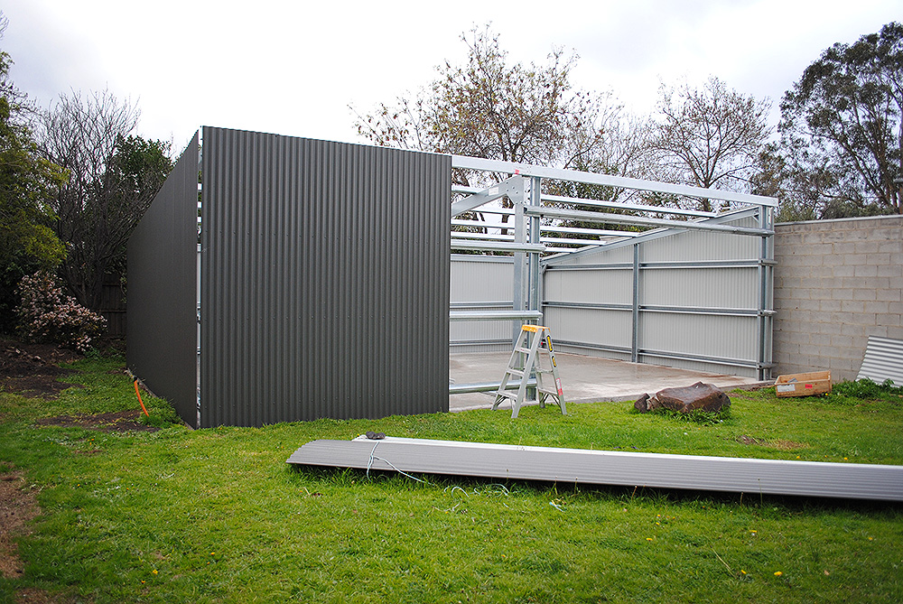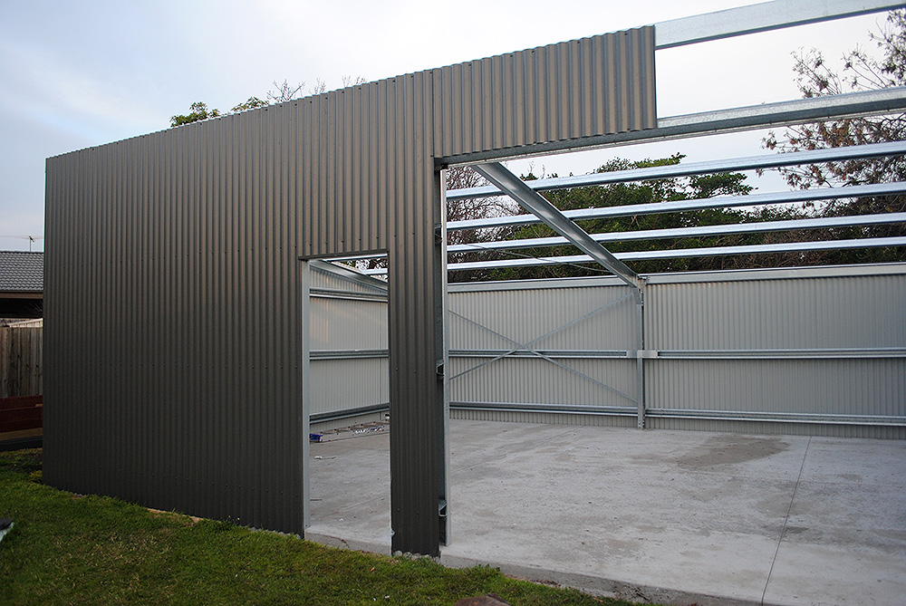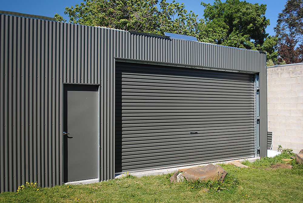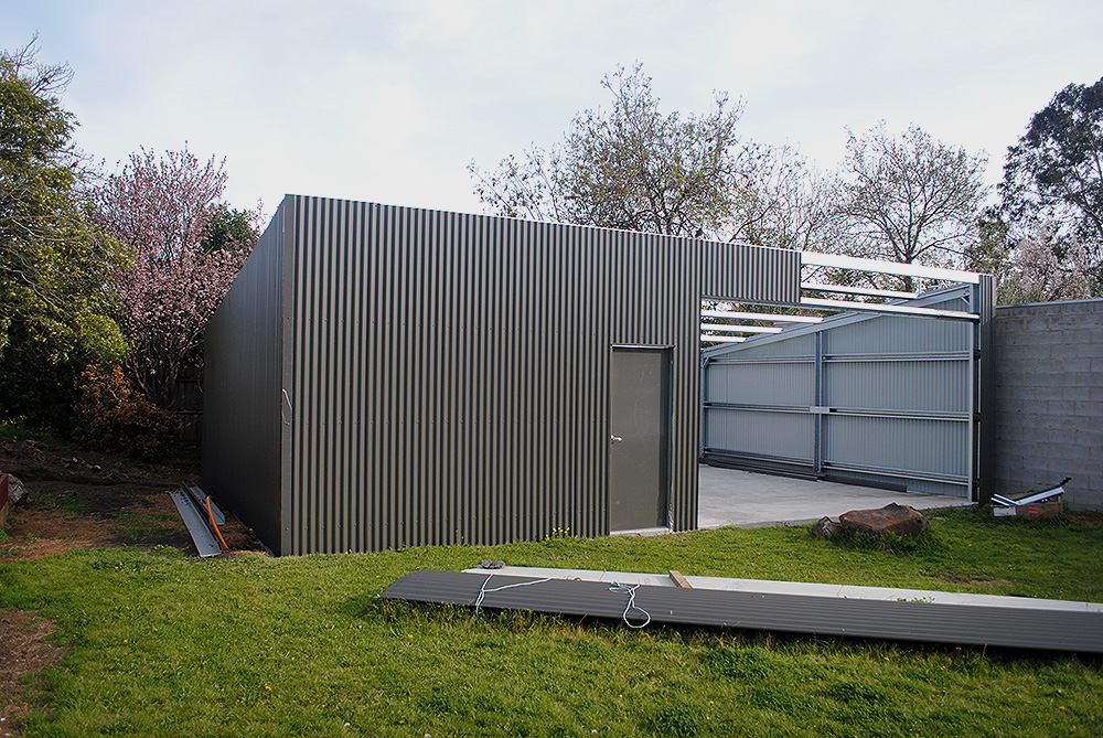 The next week we buttoned up a few loose ends, finishing the front wall cladding and attaching the flashing that sits at the top of the roller door opening to catch rain run-off.