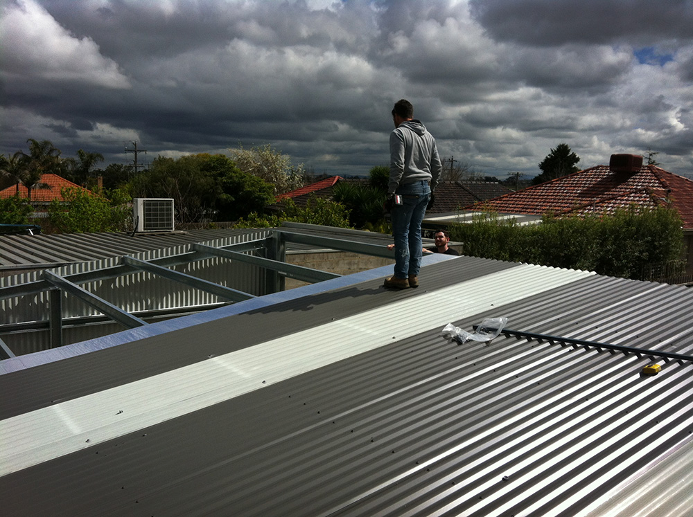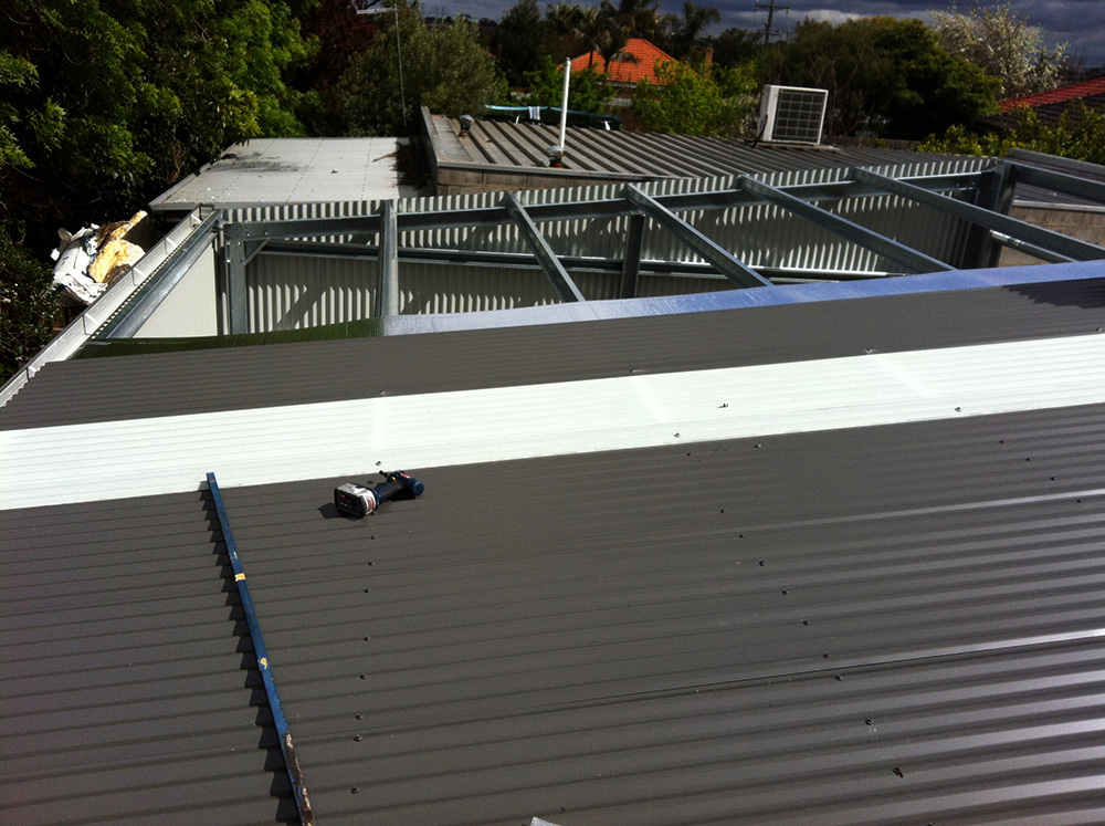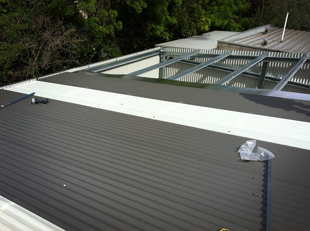 Again, more minor detail work, this time the roof flashing was completed, capping off the gaps between the exterior of the roof and walls. All that was left was to attach the vertical flashing to seal off the openings of the roller door mullions.