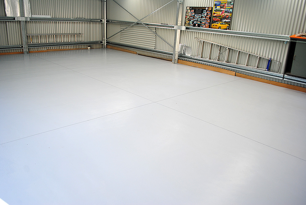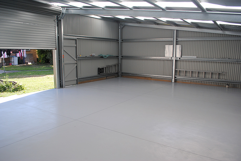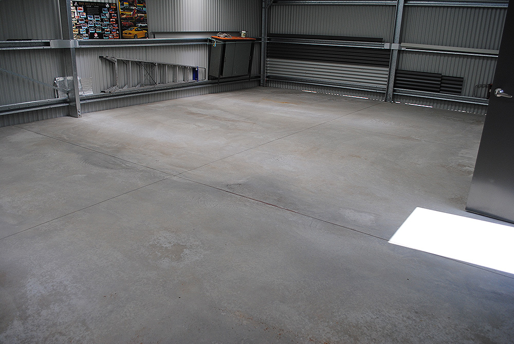 That same weekend I gave the floor an acid etch, to get it ready for sealant. Even though the garage hasn’t been ‘used’ yet, the concrete had been subjected to all kinds of weather for many months, so it needed to be thoroughly cleaned before sealing.